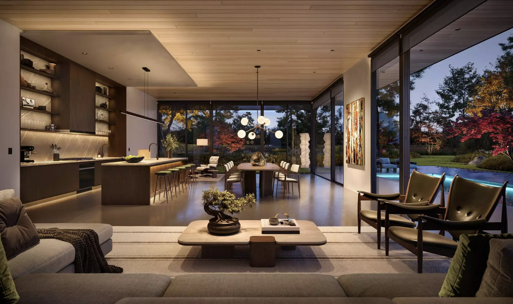 When your shades and your lights share the same brain, your home manages daylight and artificial light as one seamless experience. A single scene lowers the shades on the west-facing windows as the afternoon sun hits, dims the overhead lighting to compensate, and shifts your Ketra fixtures to a warmer tone - all without you lifting a finger.